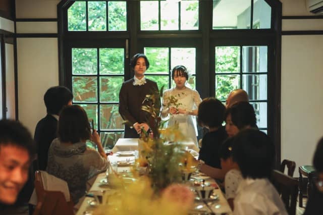 スタイリングにもこだわったおふたり。お昼はご家族。夜は友人と過ごす時間。
